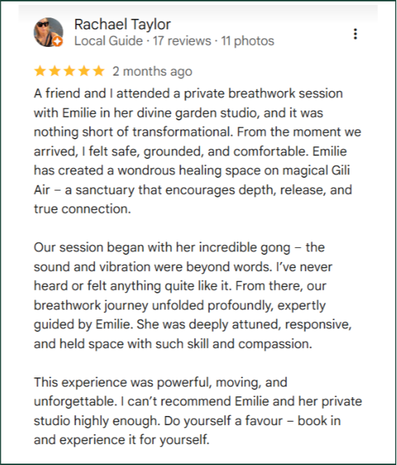 Gili Air's premier private studio space for 1:1 and small group transformative mind-body healing sessions and bespoke half, full, and multi-day retreats.